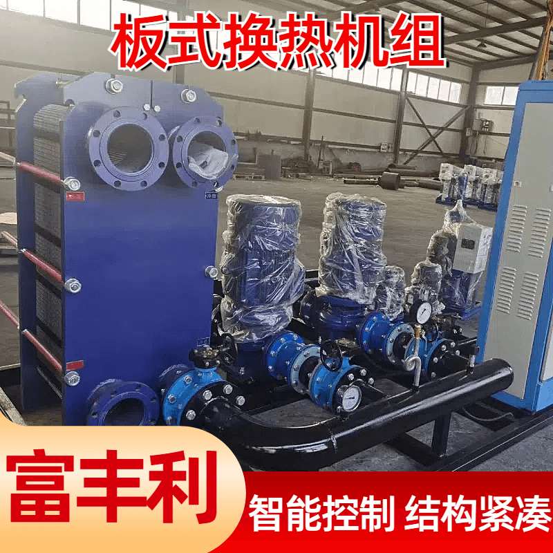 新型实用节能设备,蒸汽或高温水通过温控阀控制,被加热水首先流经不锈钢芯除污器,再经循环泵加压后进入换热器被加热后供用户。一次热媒在换热器内换热后又回至一次供热管网(蒸汽凝结水需要回收利用时)。系统的热胀冷缩有稳压罐或自动定压系统缓冲,水量损失由补水泵按设定的压力自动补充,确保系统压力稳定,正常运行。